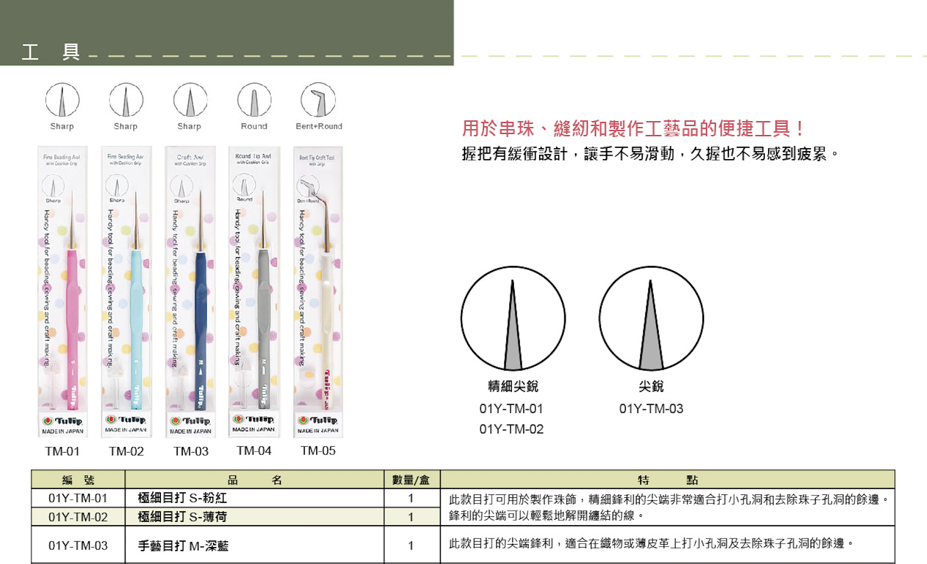 用途: 適合處理極細微的布角翻面(挑角),或是用來解開打結的細線。